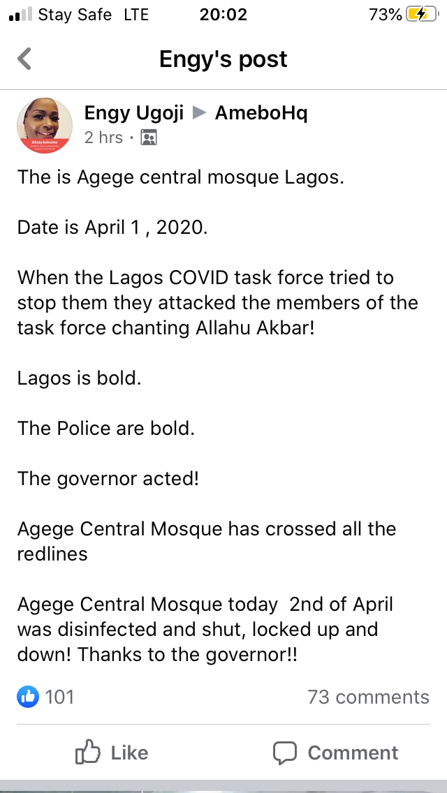 A Lady Recently Reported about Agege Central mosque according to her she Reported that The Muslims have been attacking the Lagos Task force Anytime they want to Stop them Read Her Post 👇 Post navigation Masterkraft Blast Pheelz-“You’re Gifted But We’re Not On The Same Level” In the Igbos I see the future of Africa