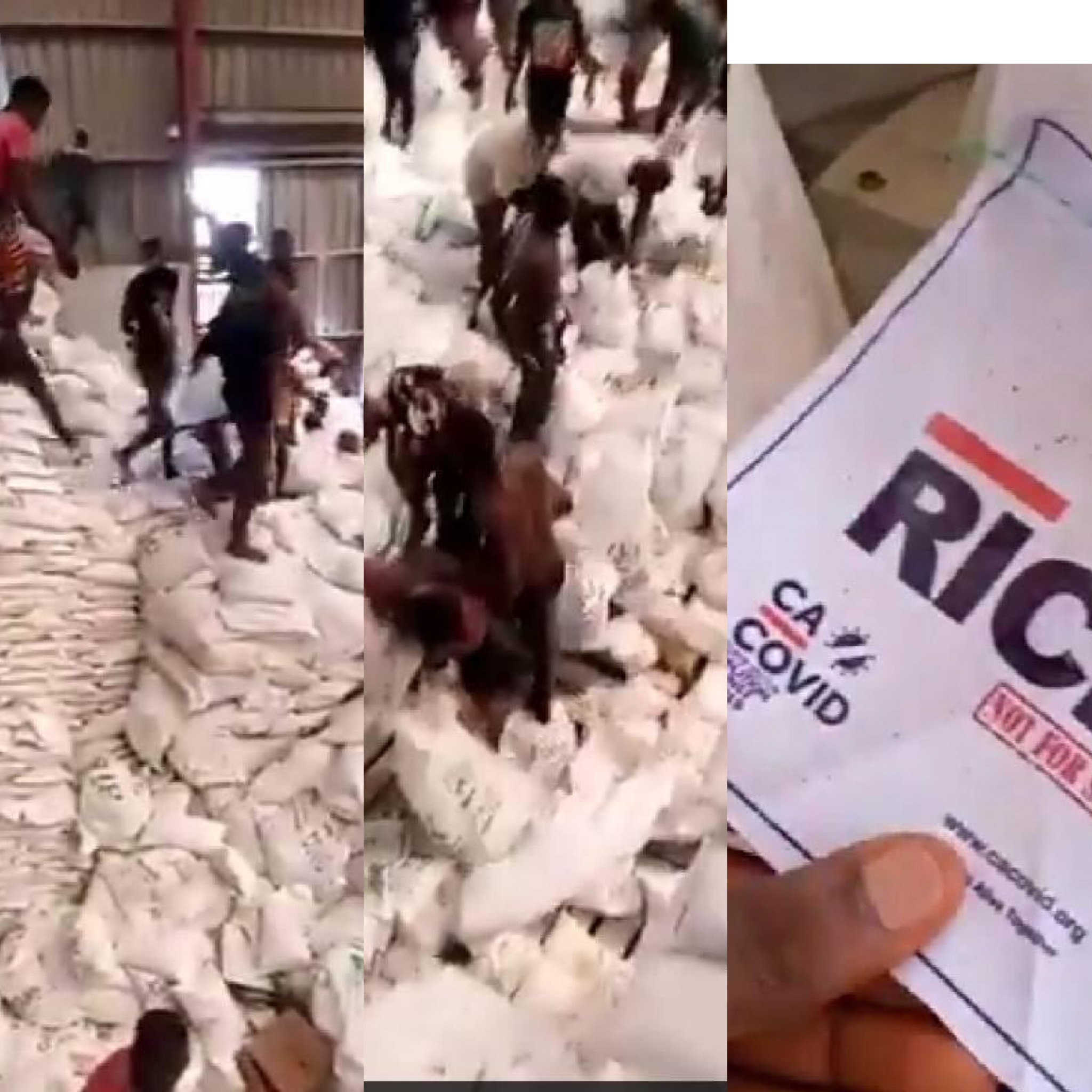 Below are Covid-19 palliatives that were stashed away in an enormous warehouse in Okota, Lagos. These palliatives were meant to be shared to hungry people who were indoors for months because of Covid-19 pandemic.