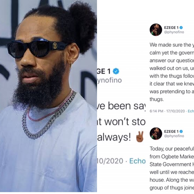 Indigenous Rapper Phyno Explained What Happened At Enugu During Protest And Also Put The Blame On Enugu State Government . A Lots of Celebrities have join the protest against SARS and is going worldwide to the extend that CNN Carried it .. As Phyno participate on protecting his people There was a movement’s that wanted to carry out a fight but everything went peacefully but after that phyno broke his silence by tweeting about what happened check it out (written by blessing habaklef )