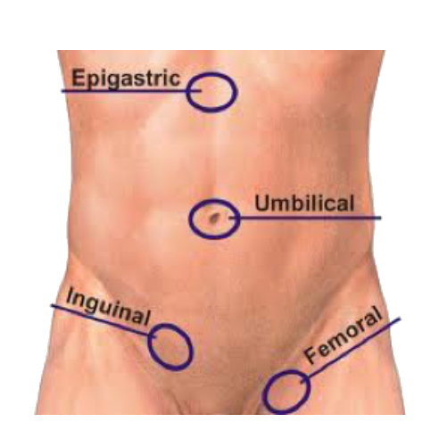 An abdominal hernia is the type of a hernia that occurs when there is an opening or weakness in the muscular structure of the wall of the abdomen. Many activities can worsen or increase the pressure of the intra-abdominal content E.g of these activities are lifting heavy objects, coughing, bowel movement, straining to urinate. Serious complications from hernia can result from the trapping of tissues in the hernias which is known as or called incarceration. This trapped tissues may have their blood supply cut off leading to damage or death of the tissue. The treatment of incarceration usually involves surgery. Abdominal hernias may occur in infants, children and adults. Both in males and females. However, the majority of abdominal hernias occur in males and about 10% of the population will have an abdominal hernia during their lifetime. Here are the different types of abdominal hernias